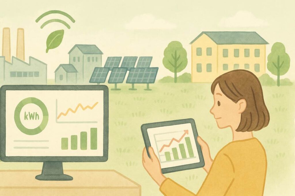 生産設備や電圧配電盤に取り付けるIoTフロント装置とゲートウェイにより、電力・電圧などのデータをミリ秒単位で高精度に収集。データは自動でクラウドサーバにアップロードされ、遠隔地からでもリアルタイムに設備の稼働状況や電力消費の変化を把握可能。工場のスマート化とエネルギー管理の効率化を実現します。